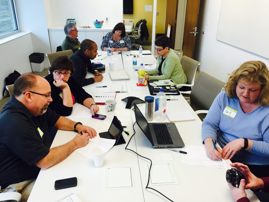 The main goal for session 5 was to introduce the group to what we call the “Understanding” phase (btw, we seem to keep adding pages to this site, so be sure to check out the growing list to the right, the newest addition being ‘Approach & Timeline’ where you can see our process visual and working timeline) and identify potential research participants for the first round of participatory research.